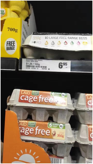 在澳洲超市,散養(yǎng)雞蛋(free range egg)價格是籠養(yǎng)雞蛋(cage egg)的兩到三倍,卻最暢銷,往往會賣斷貨。這一點跟中國土雞蛋叫好不叫座的情況形成了鮮明的對比。