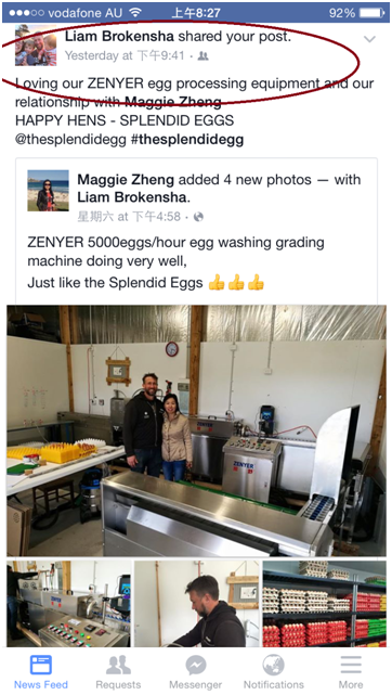 新南威爾士州客戶Kelvin于4年前購買的5000枚蛋品清洗分級生產(chǎn)線,現(xiàn)在依然運行非常良好,客戶贊不絕口,真正體現(xiàn)了振野品質(zhì)。