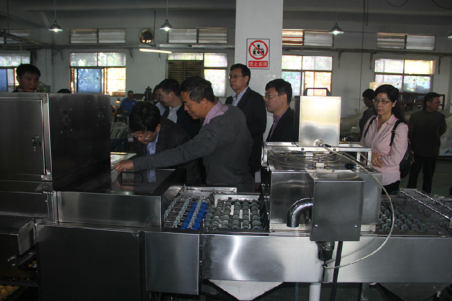 在深圳市振野蛋品智能設(shè)備股份有限公司制造車間,考察樣機試制試驗情況。