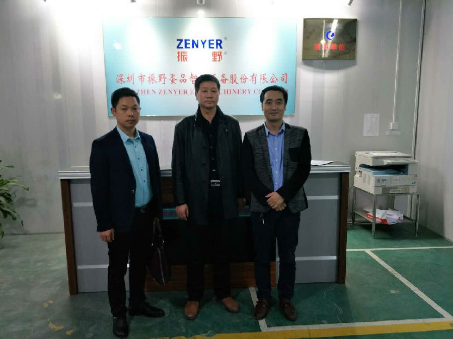 3月17日,高郵市紅心旺食品有限公司王總等人來到深圳振野公司參觀考察,并與振野公司達(dá)成合作,成功采購簽約蛋品裂痕檢測分級機(jī)等咸蛋加工設(shè)備。